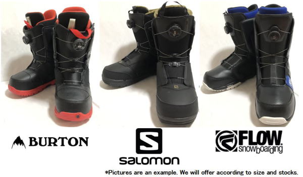 当館のスノーボードブーツは全て簡単脱着のワイヤー式BOAブーツで取り揃えております。